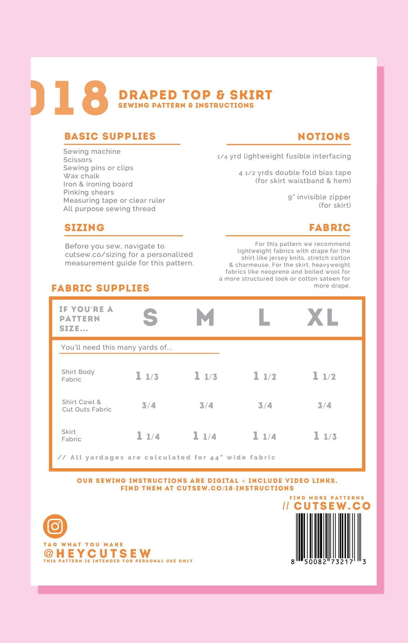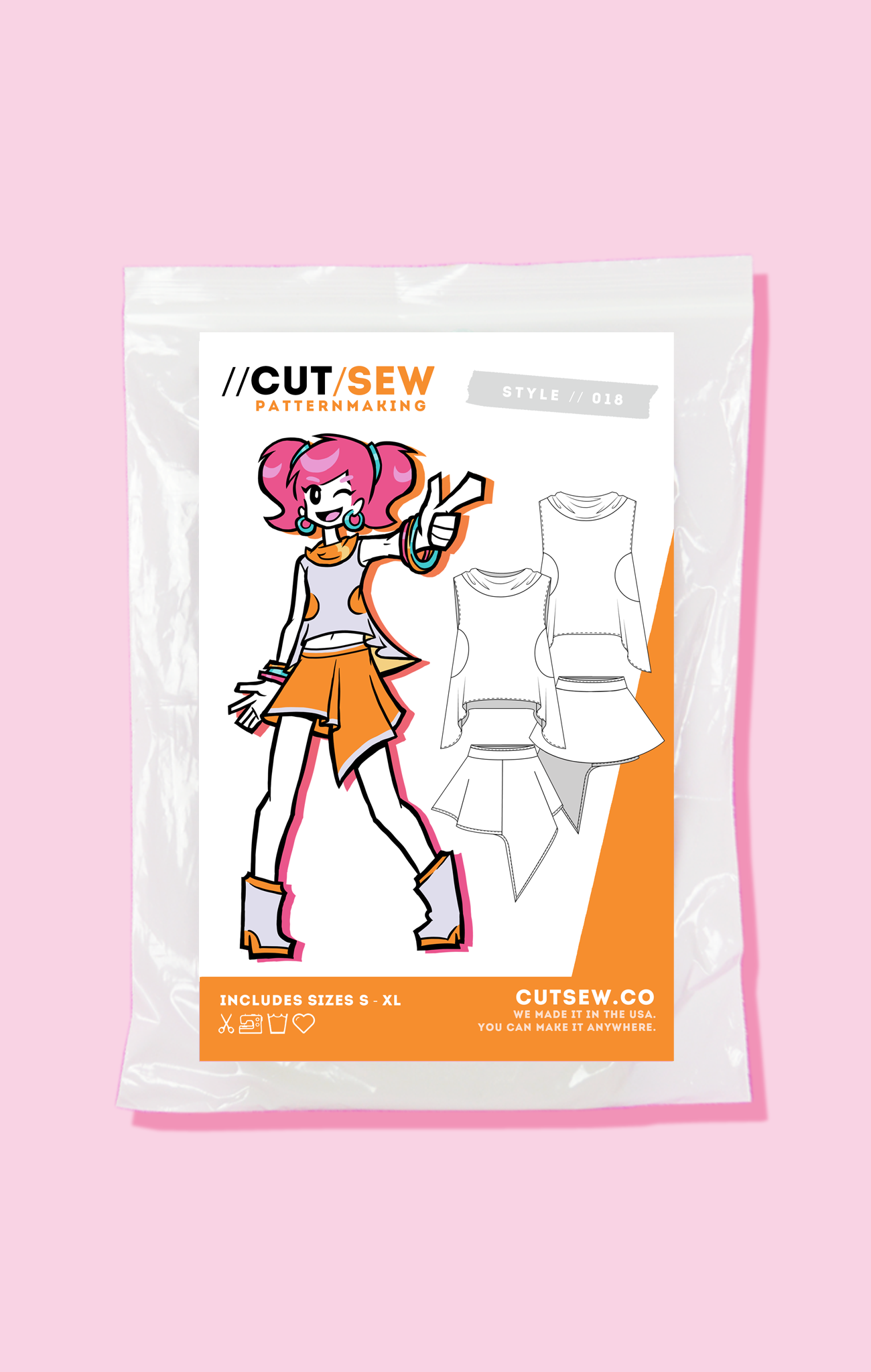 All CUT/SEW patterns are printed on sturdy 20 lb bond paper and packaged in reusable zip-top bags for easy storage. Each pattern includes sizes S - XL and can be modified using the included adjustment instructions to fit up to a US dress size 18.