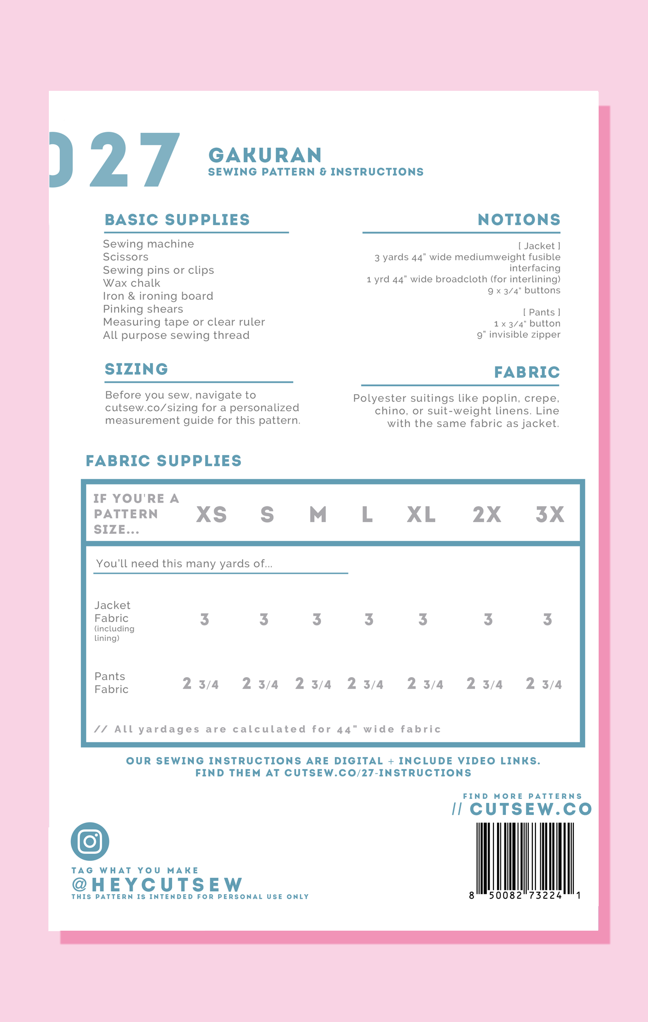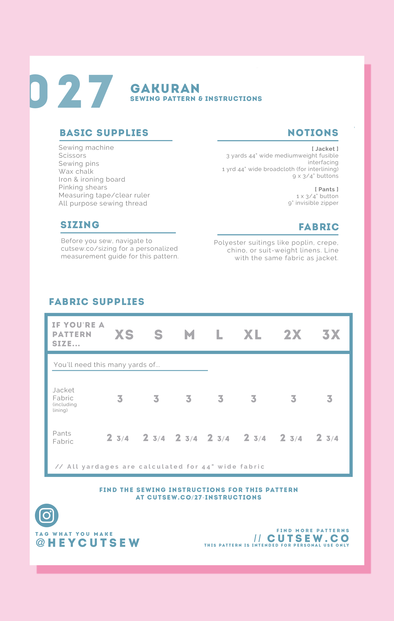 All CUT/SEW instructions are PDF format and feature diagrams for every step, video tutorials for included sewing techniques, and adjustment instructions to help achieve your perfect fit.