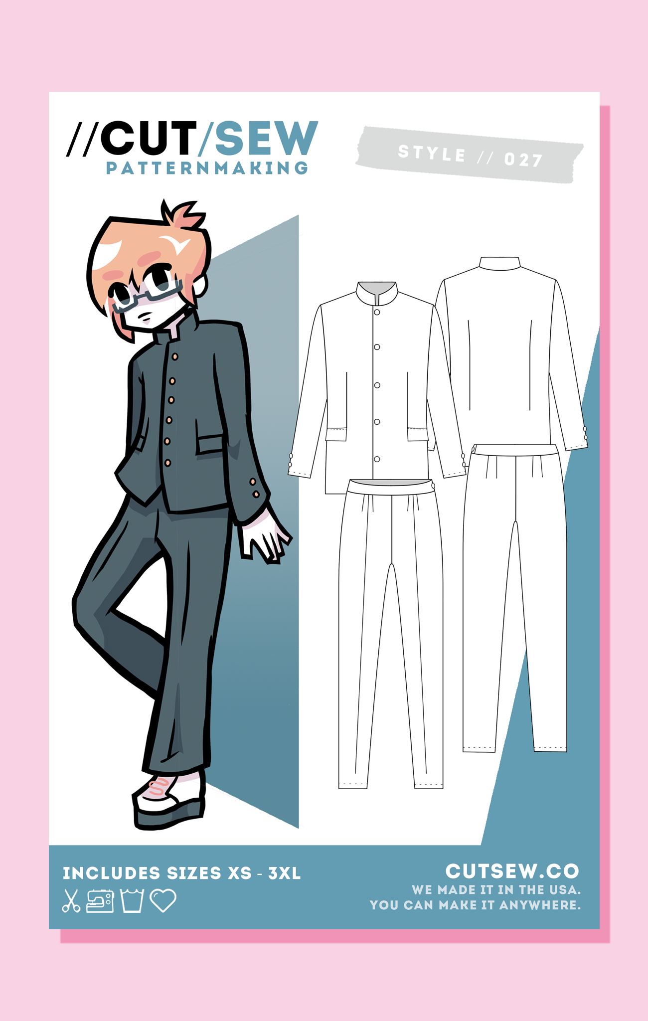 Our school boy uniform pattern is designed like the Japanese-style gakuran, meaning the sky's the limit when it comes to cosplaying your favorite sweet, sweet anime boys. The jacket features two faux-front pockets, a built in interlining for more structure, and a button front closure, while the pants feature an easy to sew side seam zipper rather than a front fly. Our unisex line of patterns are crafted for broader bodies with wider shoulders and longer torsos. Adjustment instructions are included with every pattern to modify each look to your unique body type.