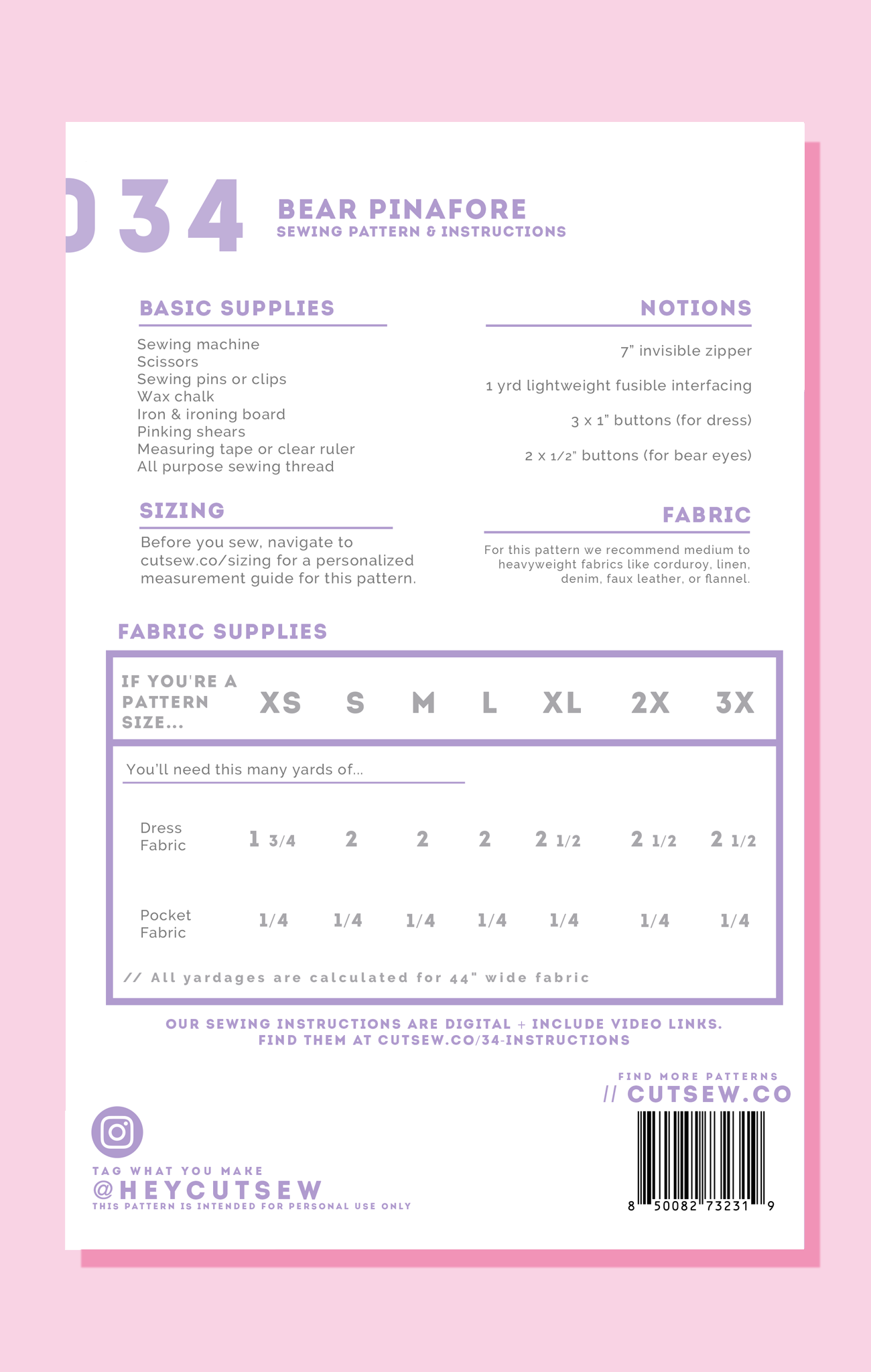 All CUT/SEW instructions are PDF format and feature diagrams for every step, video tutorials for included sewing techniques, and adjustment instructions to help achieve your perfect fit.