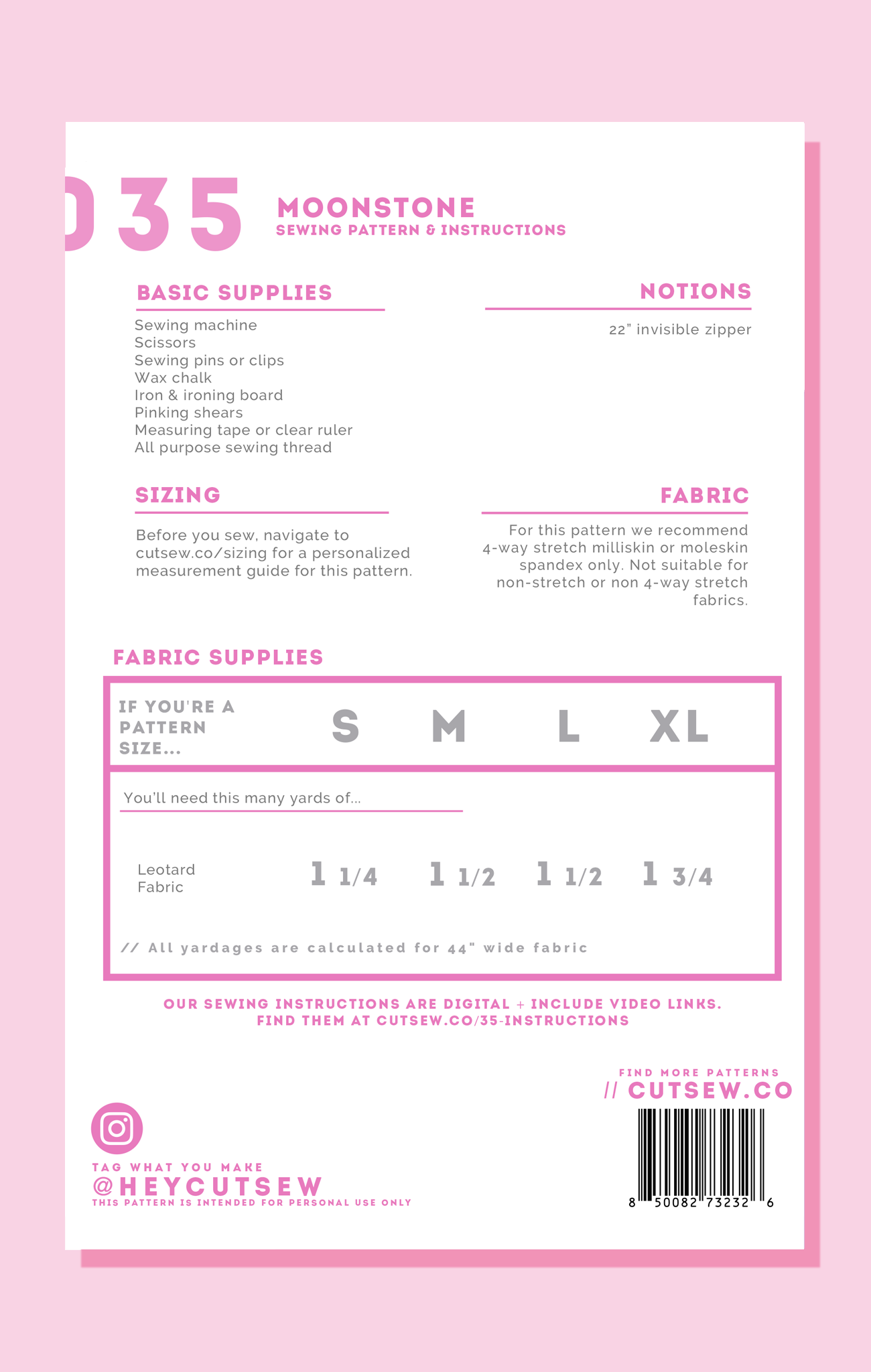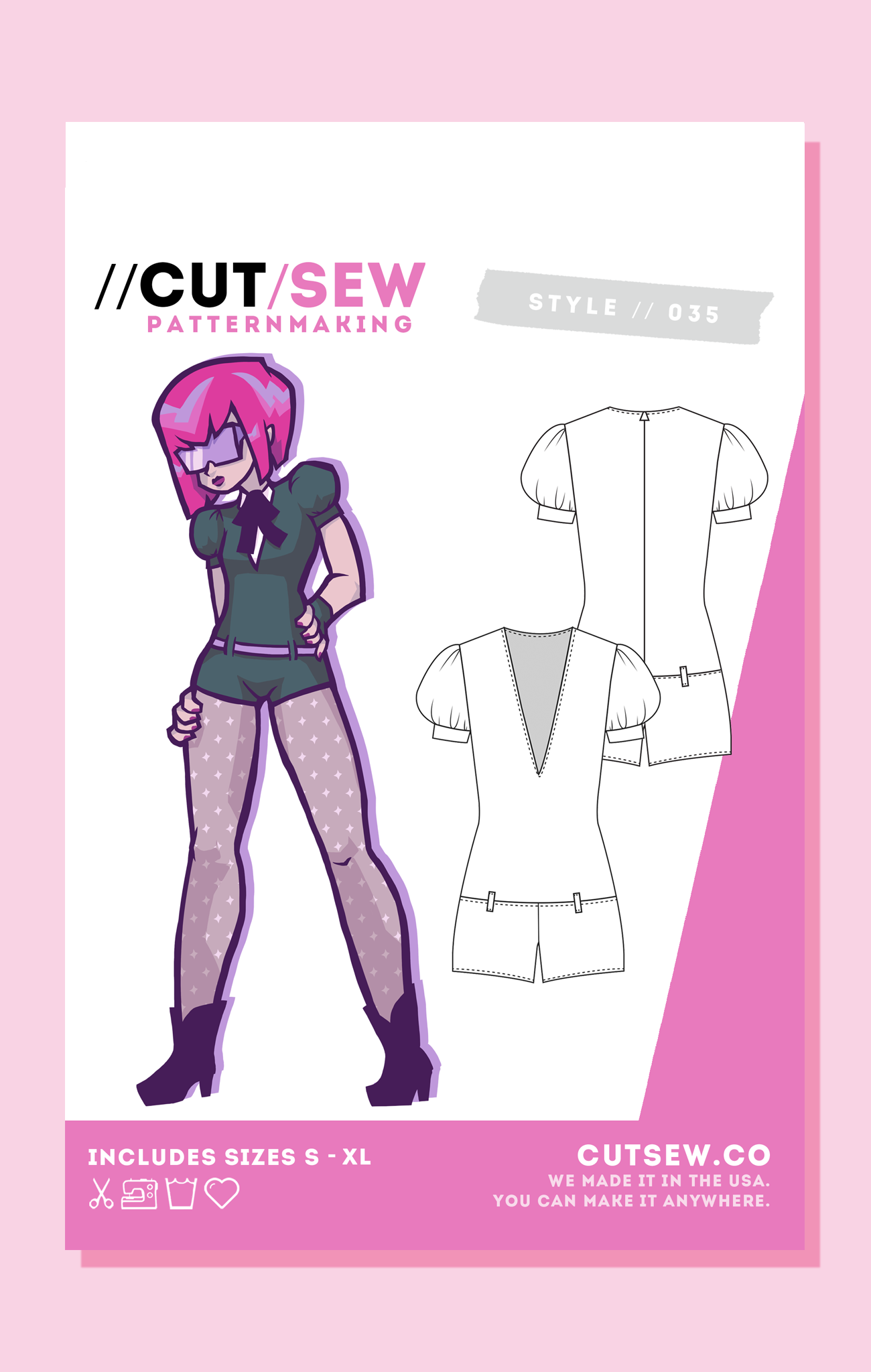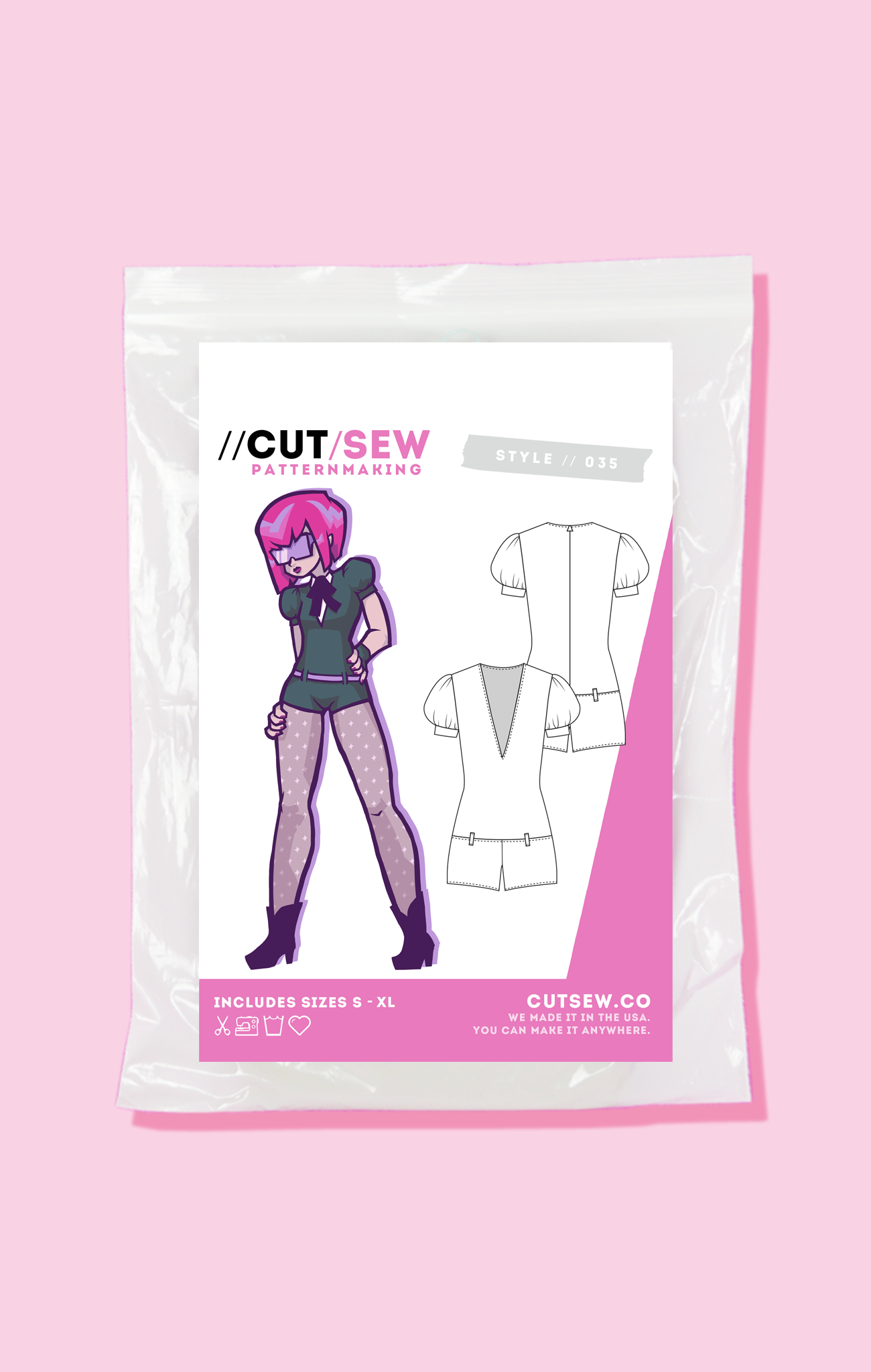All CUT/SEW patterns are printed on sturdy 20 lb bond paper and packaged in reusable zip-top bags for easy storage. Each pattern includes sizes S - XL and can be modified using the included adjustment instructions to fit up to a US dress size 18.