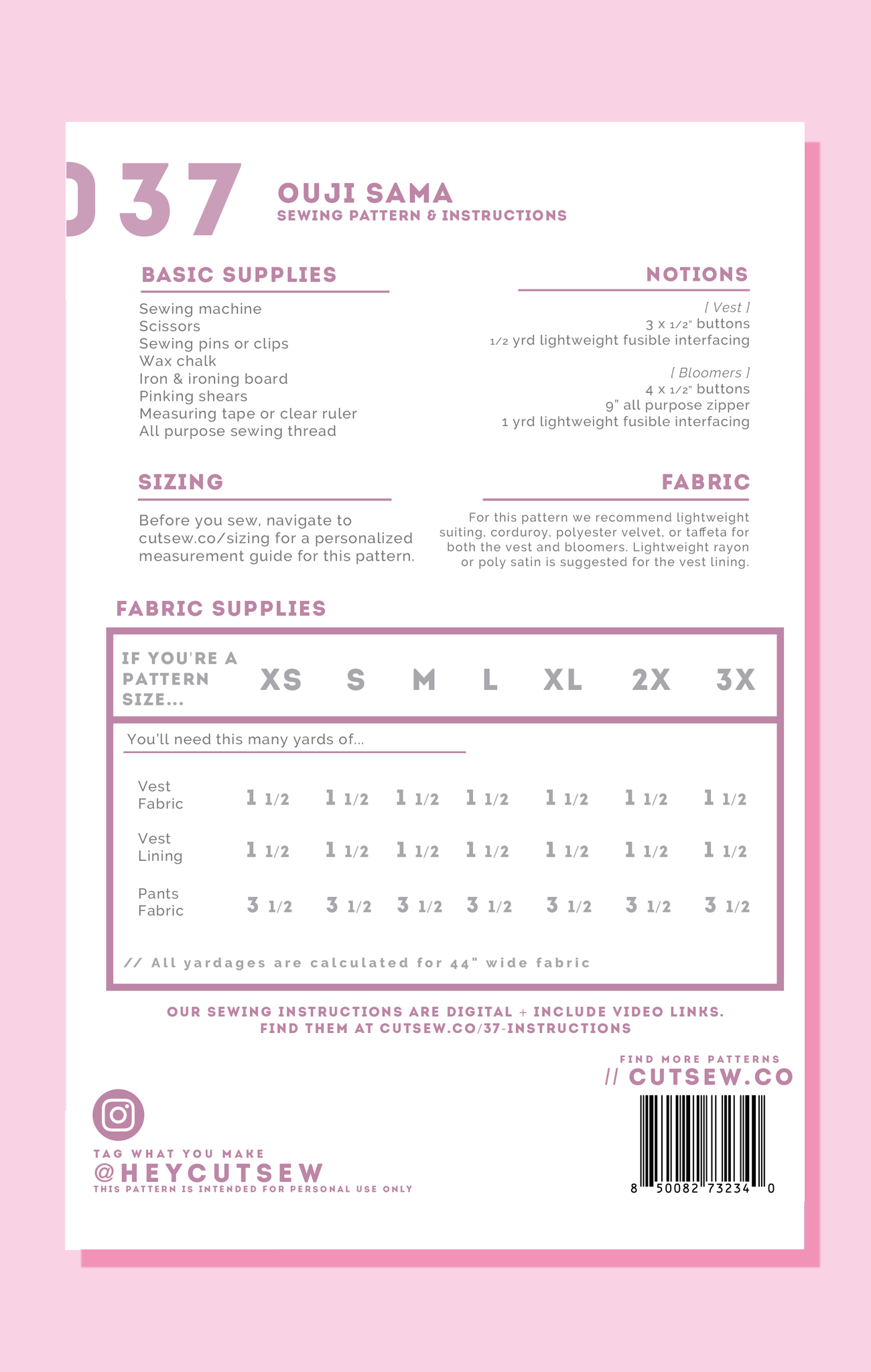 All CUT/SEW instructions are PDF format and feature diagrams for every step, video tutorials for included sewing techniques, and adjustment instructions to help achieve your perfect fit.