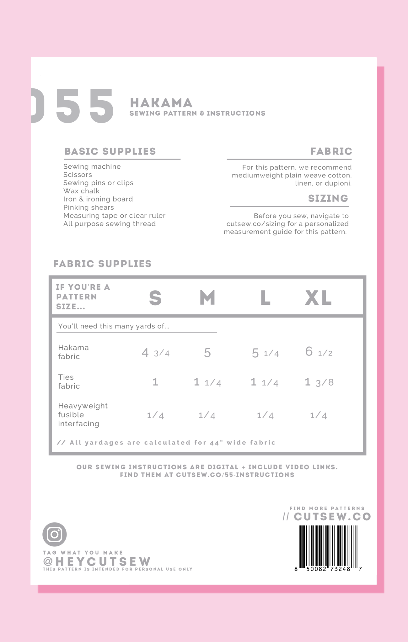 All CUT/SEW patterns are printed on sturdy 20 lb bond paper and packaged in reusable zip-top bags for easy storage. This pattern includes sizes S - XL and can be modified using the included adjustment instructions to fit up to a US dress size 18.
