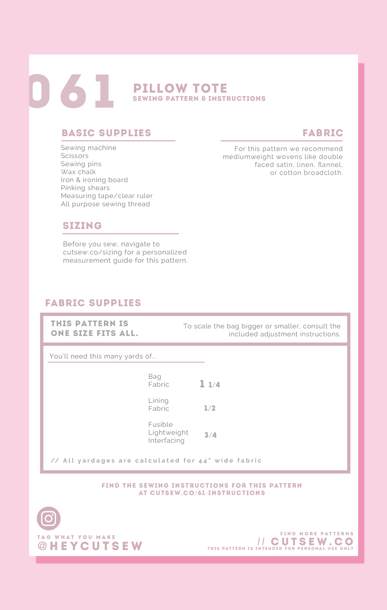 It's basic, but not basic. This simple tote bag pattern features a gathered ruffle around the outer edge for that extra kawaii it-factor. Customize it with embroidery, contrasting fabric, or even sheer or vinyl fabrics – the sky's the limit! This pattern includes a lining and a facing for a fully finished bag.