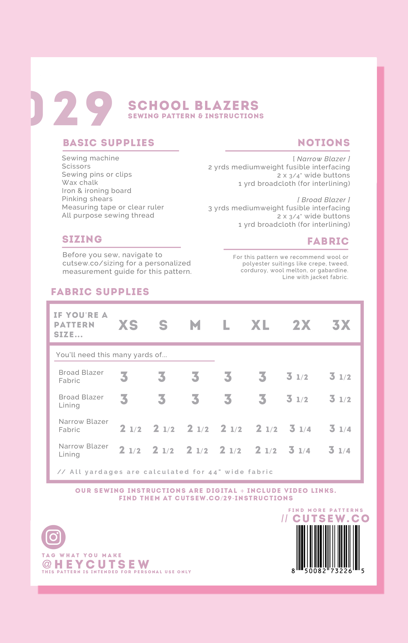 Grab that toast, shove it in your mouth, and run to class because this pattern completes our Japanese school uniform cosplay collection. Each blazer features front and back fitted darts, faux-pocket flaps, and a front two-button closure, as well as a fully lined body and sleeves. The narrow blazer is shorter in length and width and features a tailored waist for a more petite fit, while the broad blazer is longer, boxier, and has wider shoulders.