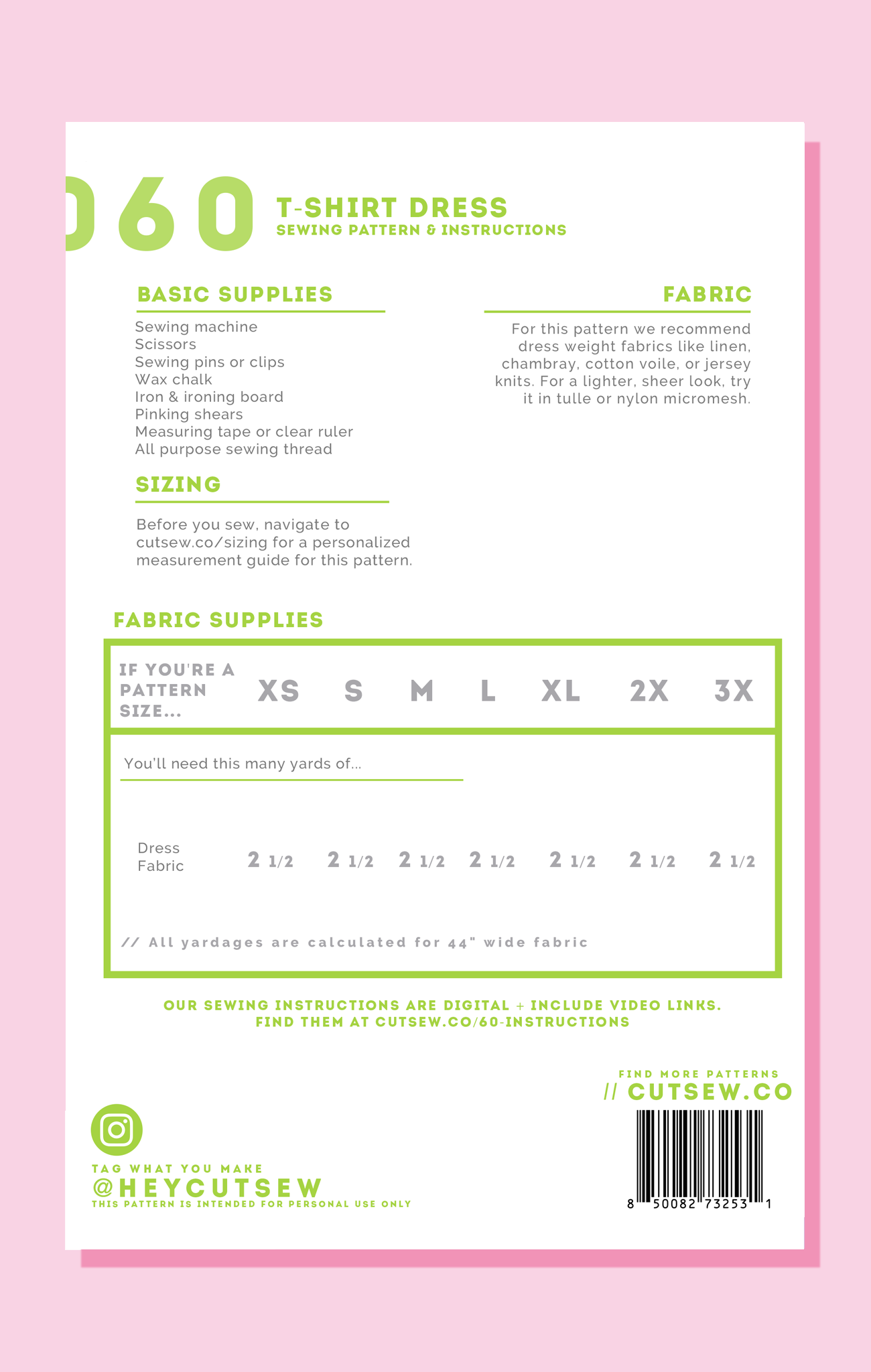 Strike a pose! This basic t-shirt dress has an oversized fit meant for layering and is perfect for experimenting with sheer or non-conventional fabrics. With a raised waist and mini-skirt hem it can be sewn as is to create a fashion forward wardrobe staple, or customized using the included adjustment instructions for different lengths, widths, and fits.