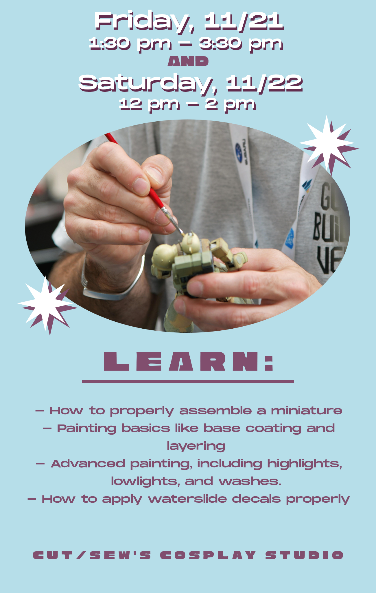 Take your tabletop minis to the next level! In this workshop you'll learn how to assemble and paint your very own miniature from start to finish, covering base coats, layers, highlights, washes, and waterslide decals. A wide selection of Army Painter's Fanatic paint line will be on hand to practice with, and students will also walk away with a custom hobby toolkit designed by your instructor, Snap Plastic Studios.